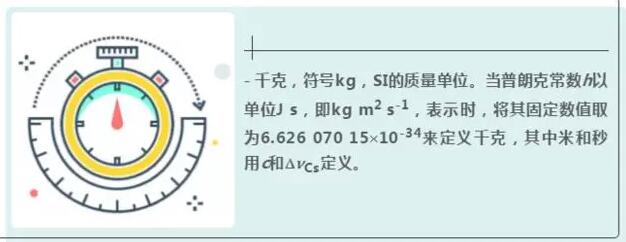 - 千克,符號kg,SI的質(zhì)量單位。當(dāng)普朗克常數(shù)h以單位J s,即kg m2 s-1,表示時,將其固定數(shù)值取為6.626 070 15′10-34來定義千克,其中米和秒用c和DnCs定義。