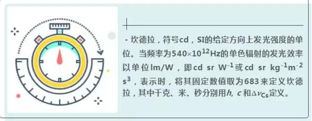 -坎德拉,符號cd,SI的給定方向上發(fā)光強度的單位。當(dāng)頻率為540′1012Hz的單色輻射的發(fā)光效率以單位lm/W,即cd sr W-1或cd sr kg-1m-2 s3,表示時,將其固定數(shù)值取為683來定義坎德拉,其中千克、米、秒分別用h, c 和DnCs定義。